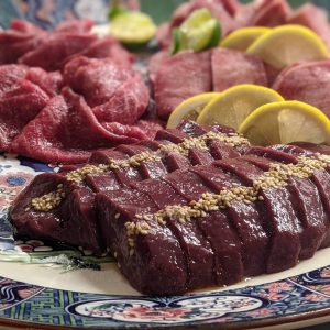 続く塩焼物では、驚くほど軽やかな「たてみち泡檸檬」で味わう赤タンをはじめ、部位ごとの個性を引き出す三種のタンをご用意。タレ焼物では、秘伝の黒タレで深みを増した赤身肉と、名門「神谷商店」から届く鮮度抜群のホルモンが宴を盛り上げます。
